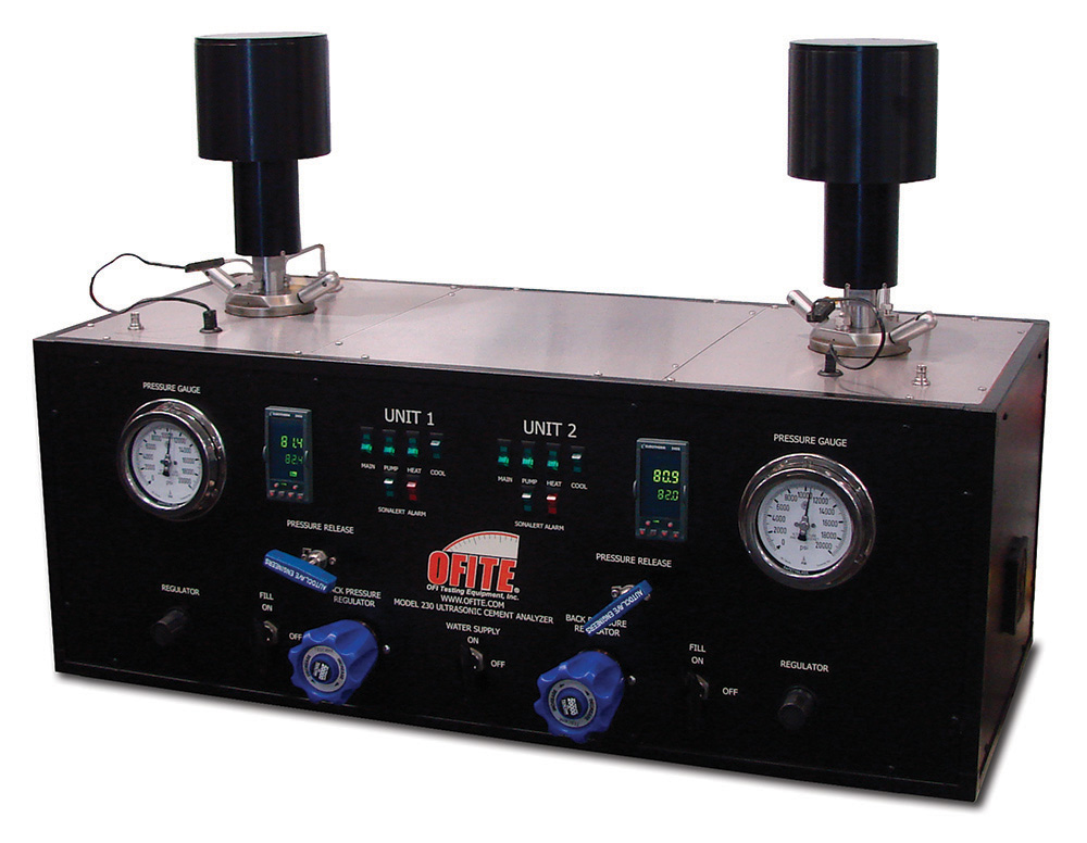 The SGSM is an accessory for the OFITE UCA (Ultrasonic Cement Analyzer). When used together, these two instruments give users a complete picture of the setting characteristics of cement slurries. Having the ability to both condition and analyze cement slurries allows the SGSM to mechanically measure the gel strength development rate of slurries that are subjected to a comprehensive range of downhole conditions; up to a maximum pressure of 20,000 psi and a maximum temperature of 204°C (400°F).