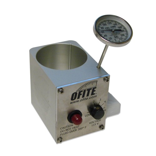 The Thermocup is designed for controlling the temperature of a mud sample while taking readings with a viscometer. The holes in the stage of OFITE Viscometers have been positioned to hold the heated cups at a 45° angle to the line of the instrument for better accommodation of thermometers and power cables. A removable stainless steel cup (optional) makes cleaning safer and easier.