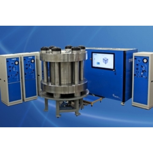 The RPS-600 is designed to test cubical specimens 12" × 12" × 12" and have the capability of applying orthogonal stresses in each of the three principal directions. The maximum major principal stress is 15,000 psi. This system provides independent control of all three principal stresses.