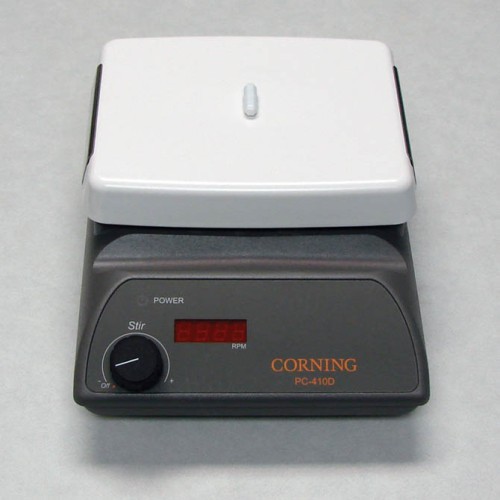 The digital display accurately indicates stirring speeds and also indicates when set stirring speeds are reached. Exclusive closedloop stirring control monitors and regulates the speed with an accuracy within 5%. The frame includes a built-in mount for an optional 18" (45.7 cm) support rod for accurate titrating, and the angled front panel deflects spills from the electronics.